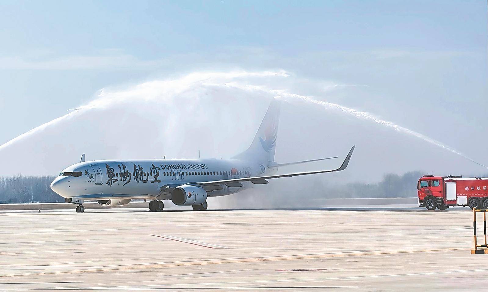 11月12日,亳州机场用水门仪式欢迎首航航班。