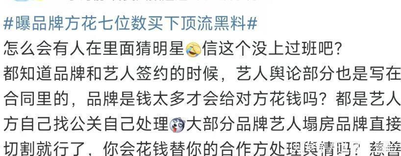 这个事情真是有点匪夷所思,看热闹的人都觉得有点不可思议,认为品牌方不会那么傻,花一大笔钱去买个随时可能爆炸的事,一旦没有及时划清界限,以后品牌岂不是会被牵连得更厉害吗?