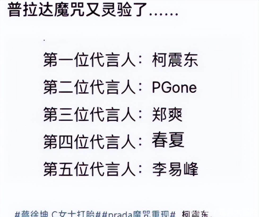 还记得普拉达这个品牌吧,倒霉事不少,从柯某东到PG One,再到某爽和吴某凡,再到李某峰,一个接一个地出事,搞得整个品牌也跟着受牵连,影响挺大。