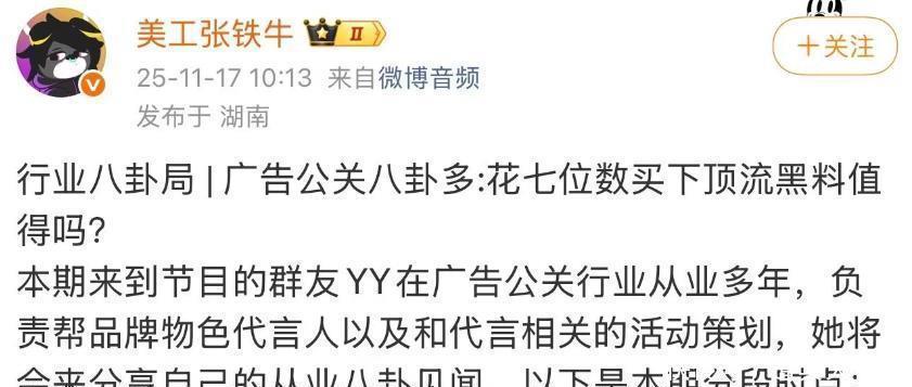 11月17日,有个知道内情的人发帖说,某个品牌刚和一个男顶流明星签了约,准备正式宣布他代言的消息时,突然收到狗仔那边的消息。