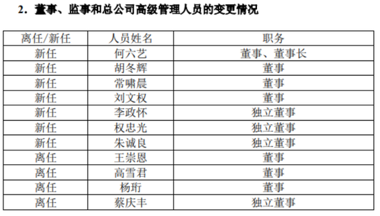 除了何六艺,常啸晨、刘文权、胡冬辉、李政怀、朱诚良、权忠光亦为新加入董事会的人员。