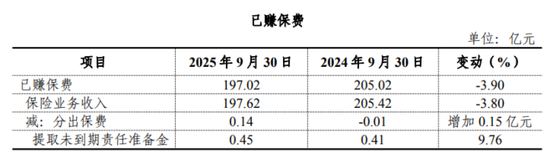2025年1-9月,幸福人寿实现已赚保费197.02亿元,同比下降3.90%,其中原保险保费收入197.62亿元,分出保费0.14亿元,提取未到期责任准备金0.45亿元。其中,主售传统寿险保费收入166.69亿元,较上年同比下降4.18%。
